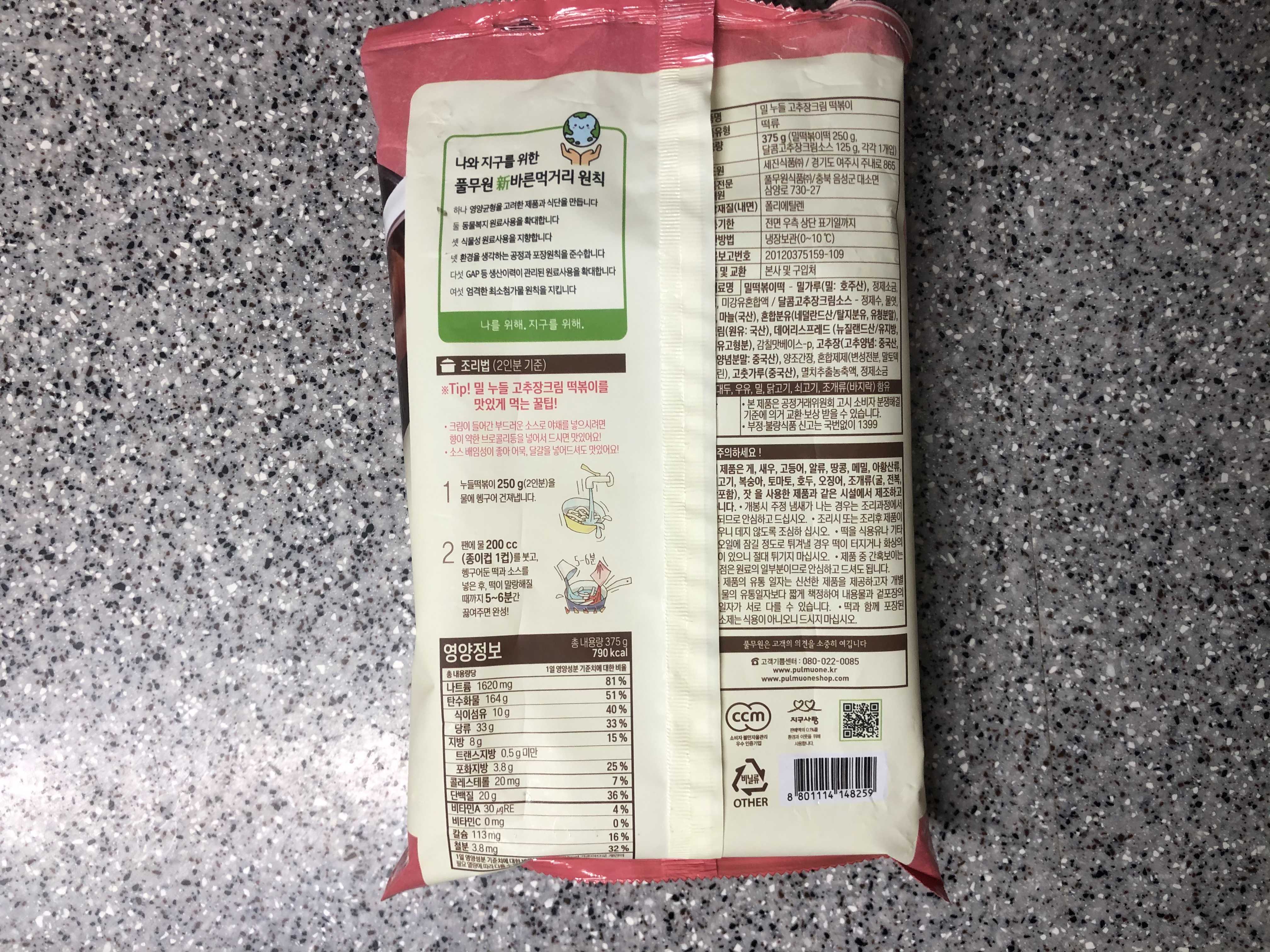 》 풀무원 밀 누들떡볶이 고추장크림 맛