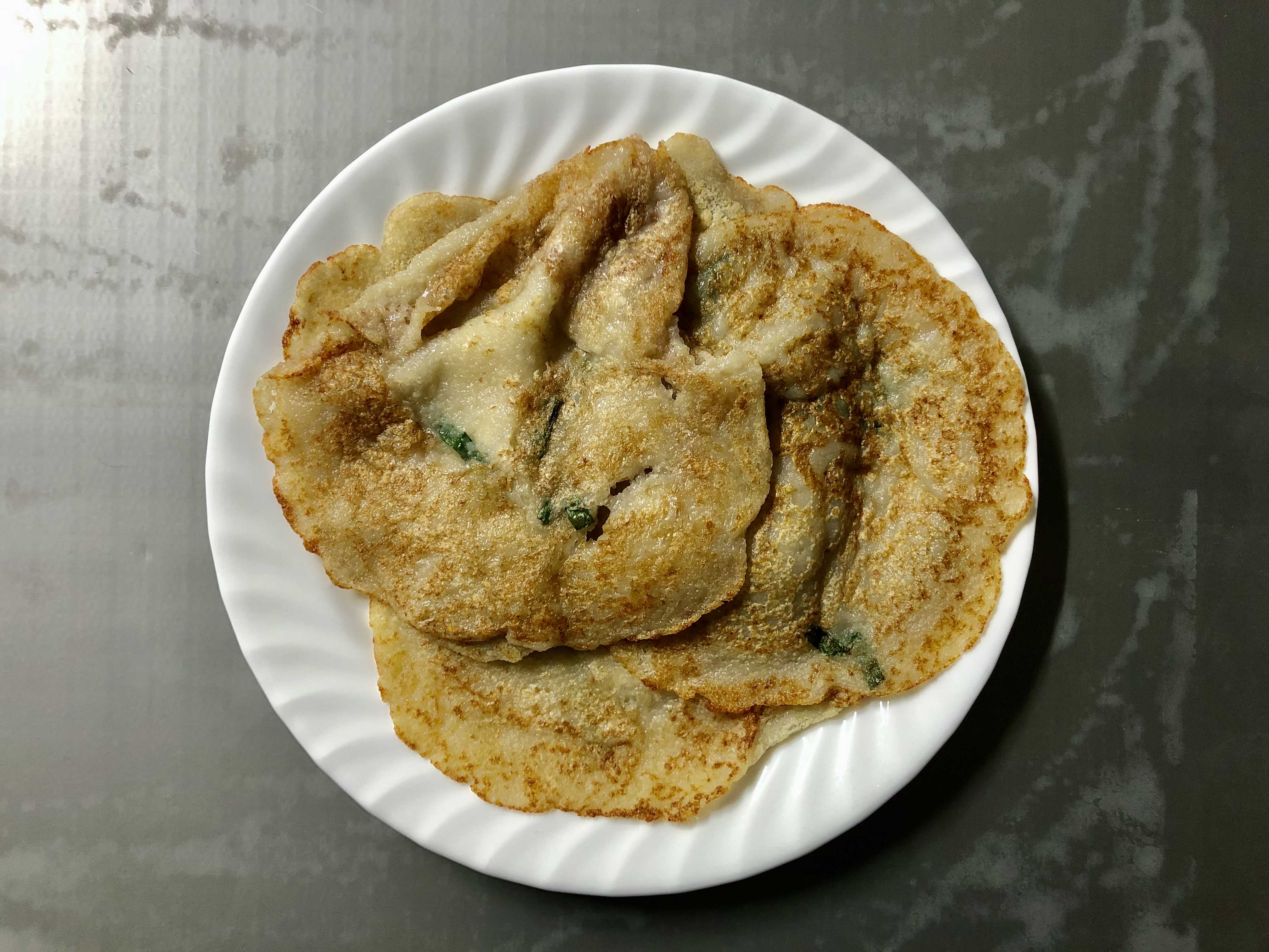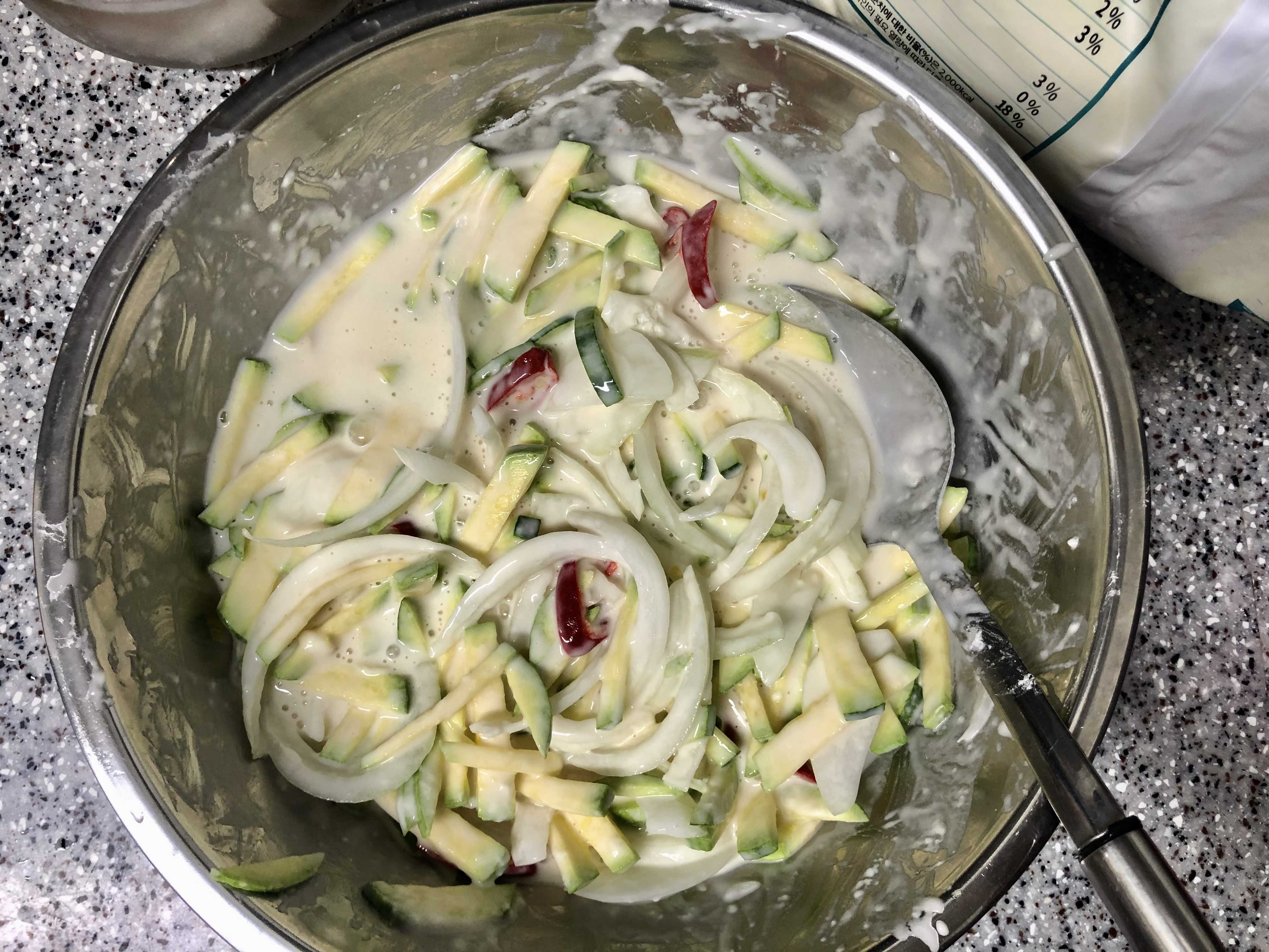 - 반죽에 전분을 추가하고 재료들과 잘 섞은 뒤 부친다.