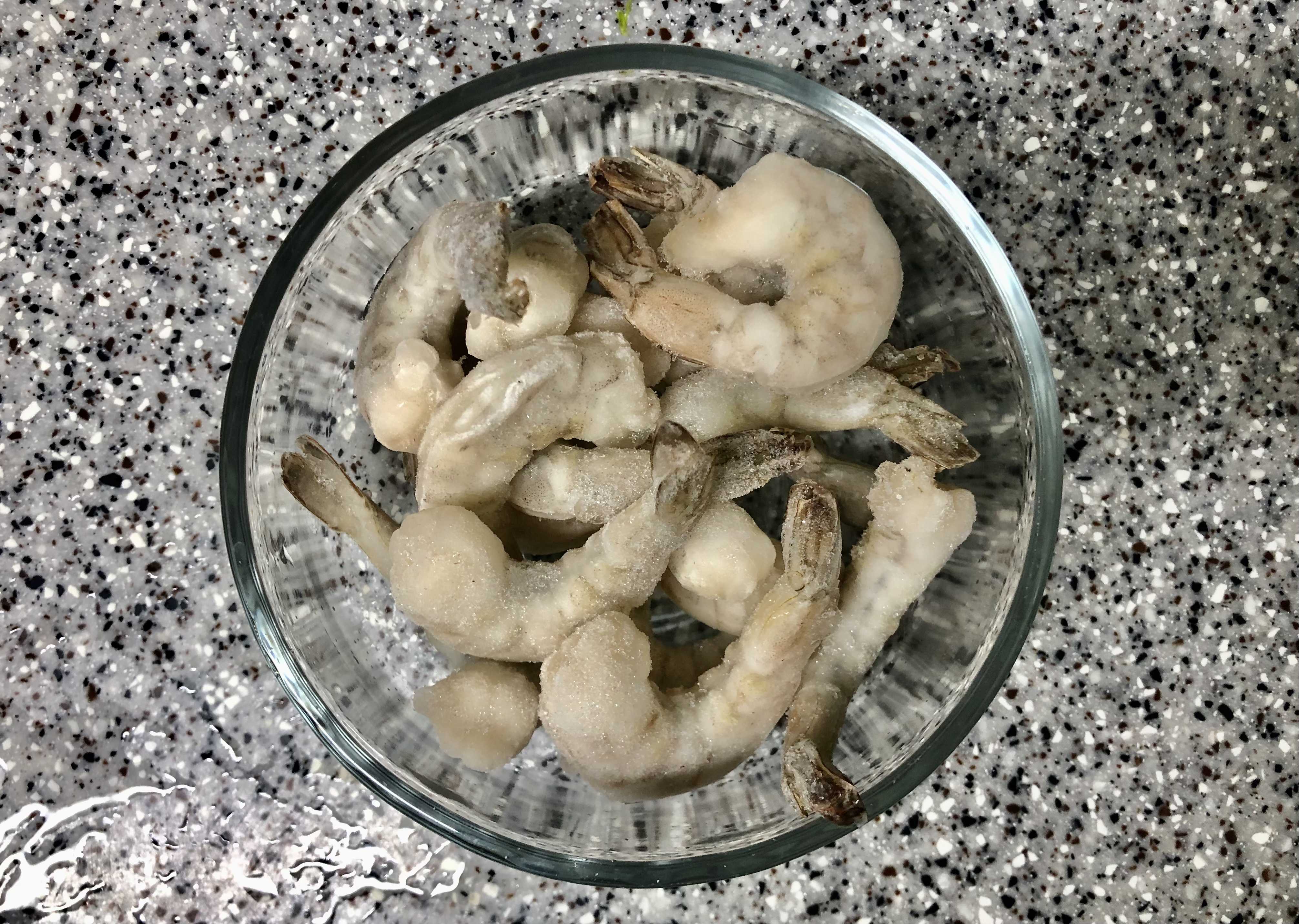 얼은 상태의 새우를 물에다 조금 담가 두었다가