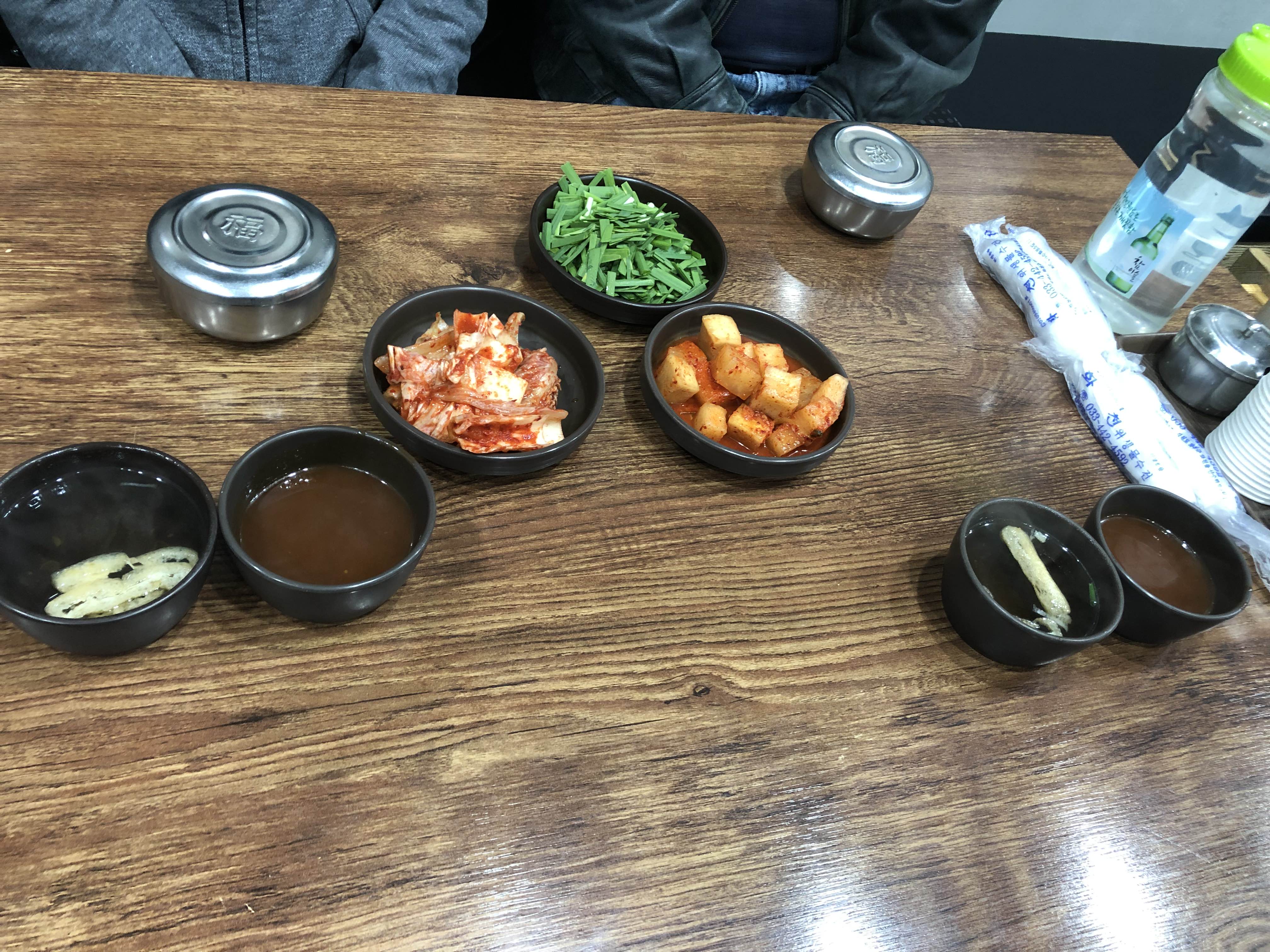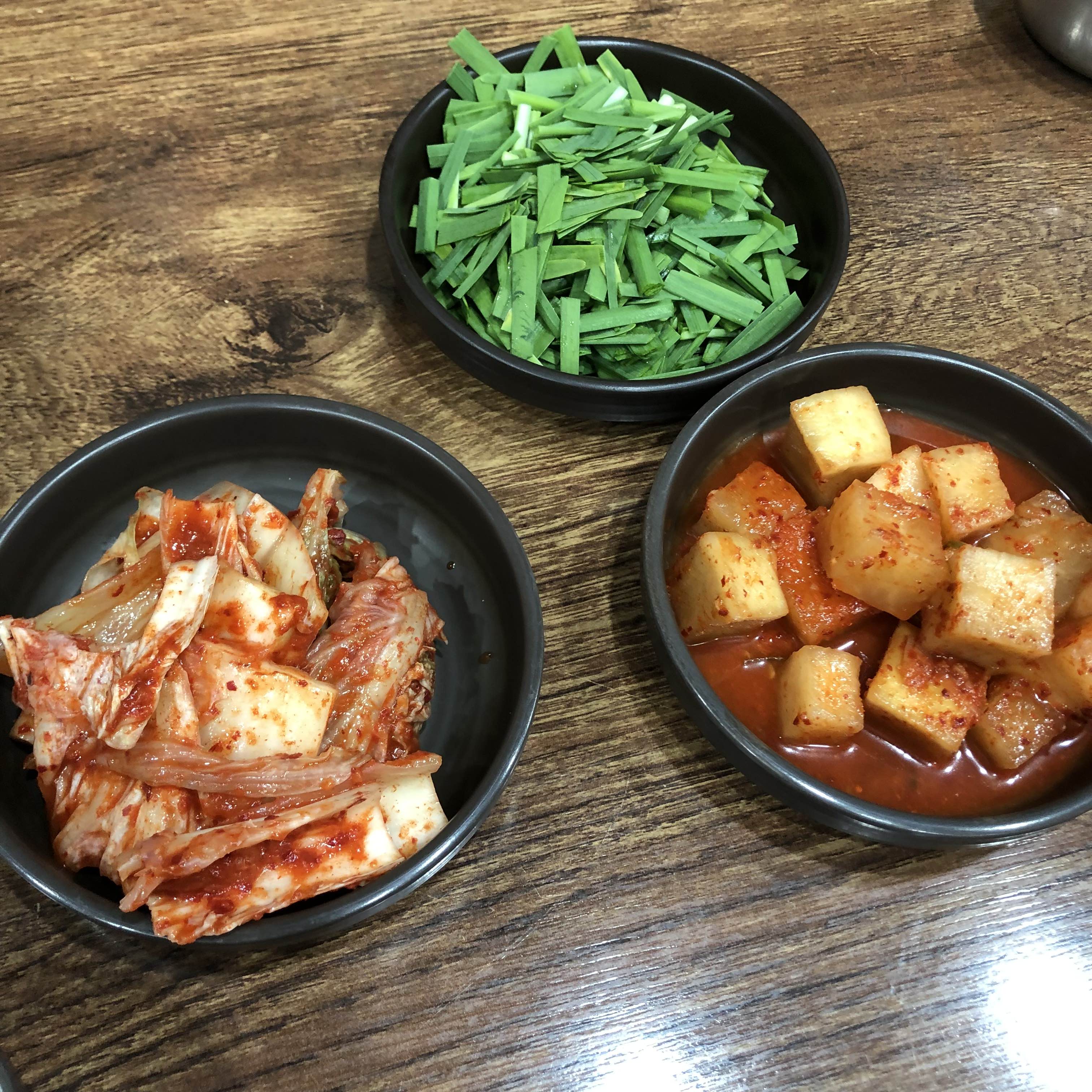 중앙에 있는 배추김치와 깍두기, 부추는 순댓국 용