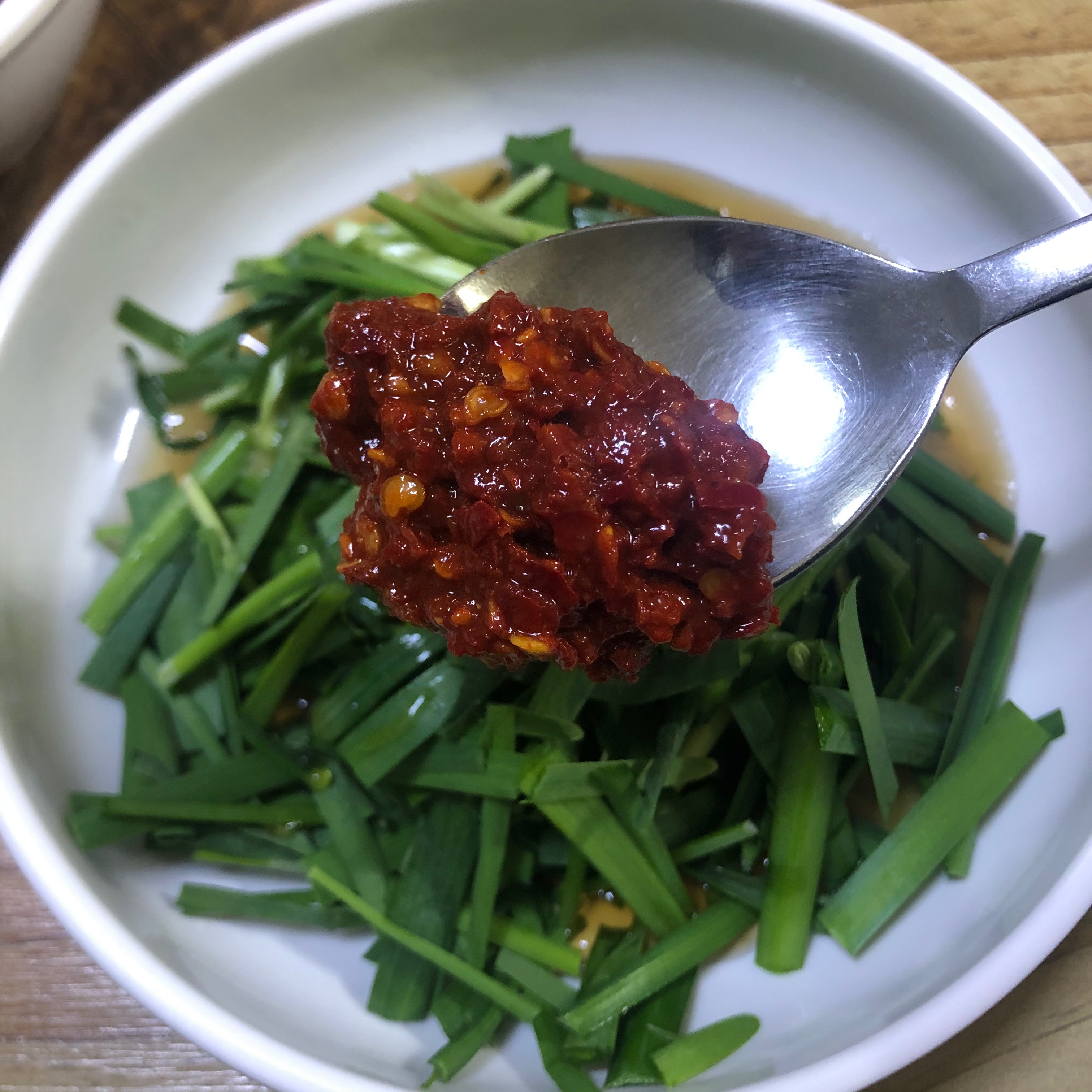 부추를 앞 접시에 먹을 만큼 덜어준 뒤