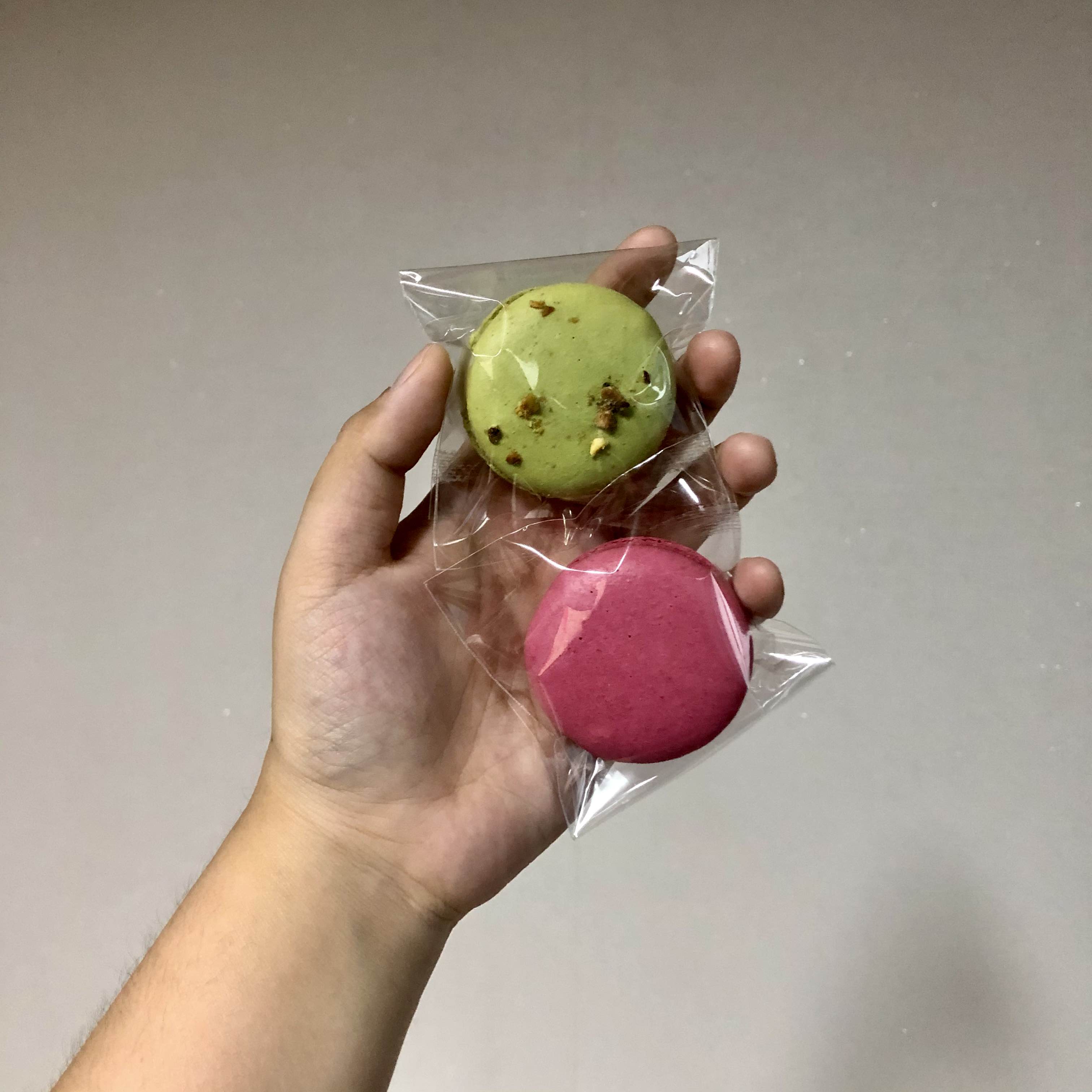 마카롱은 녹색은 피스타치오, 분홍색은 베리류였던 것 같은데