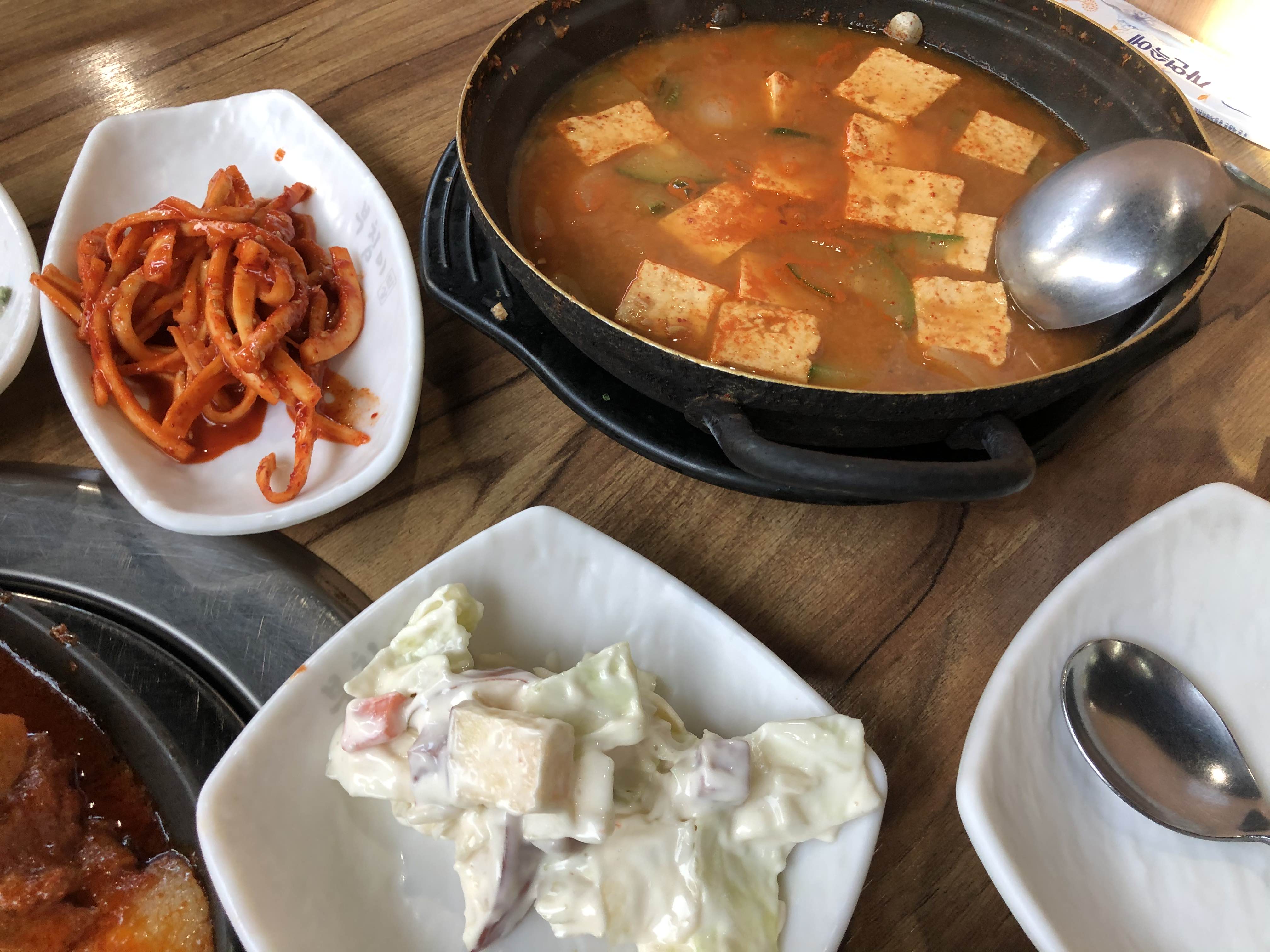 밥과 함께 먹을 두부찌개도 나왔다