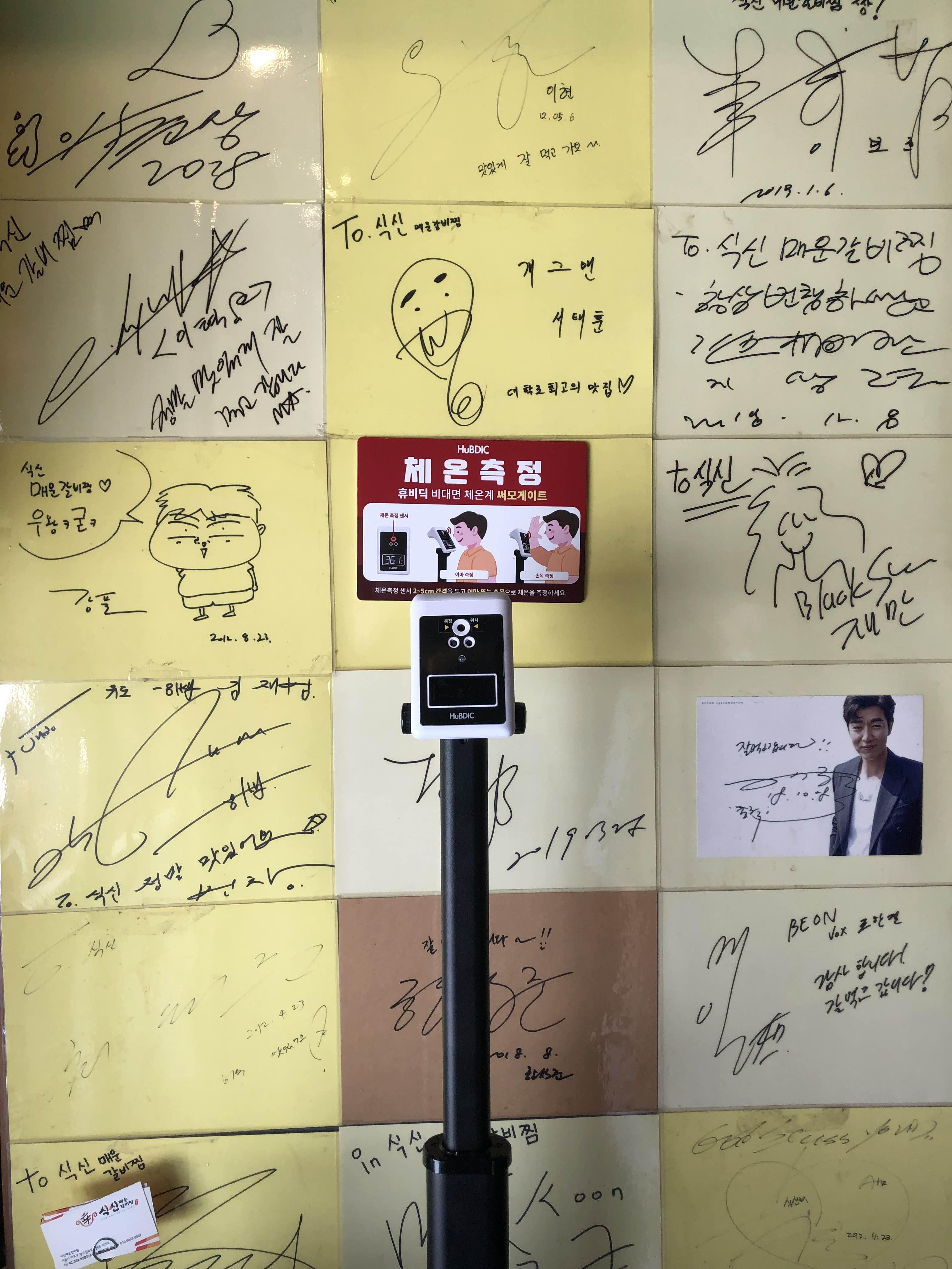 입구에 체온측정기가 서있었다