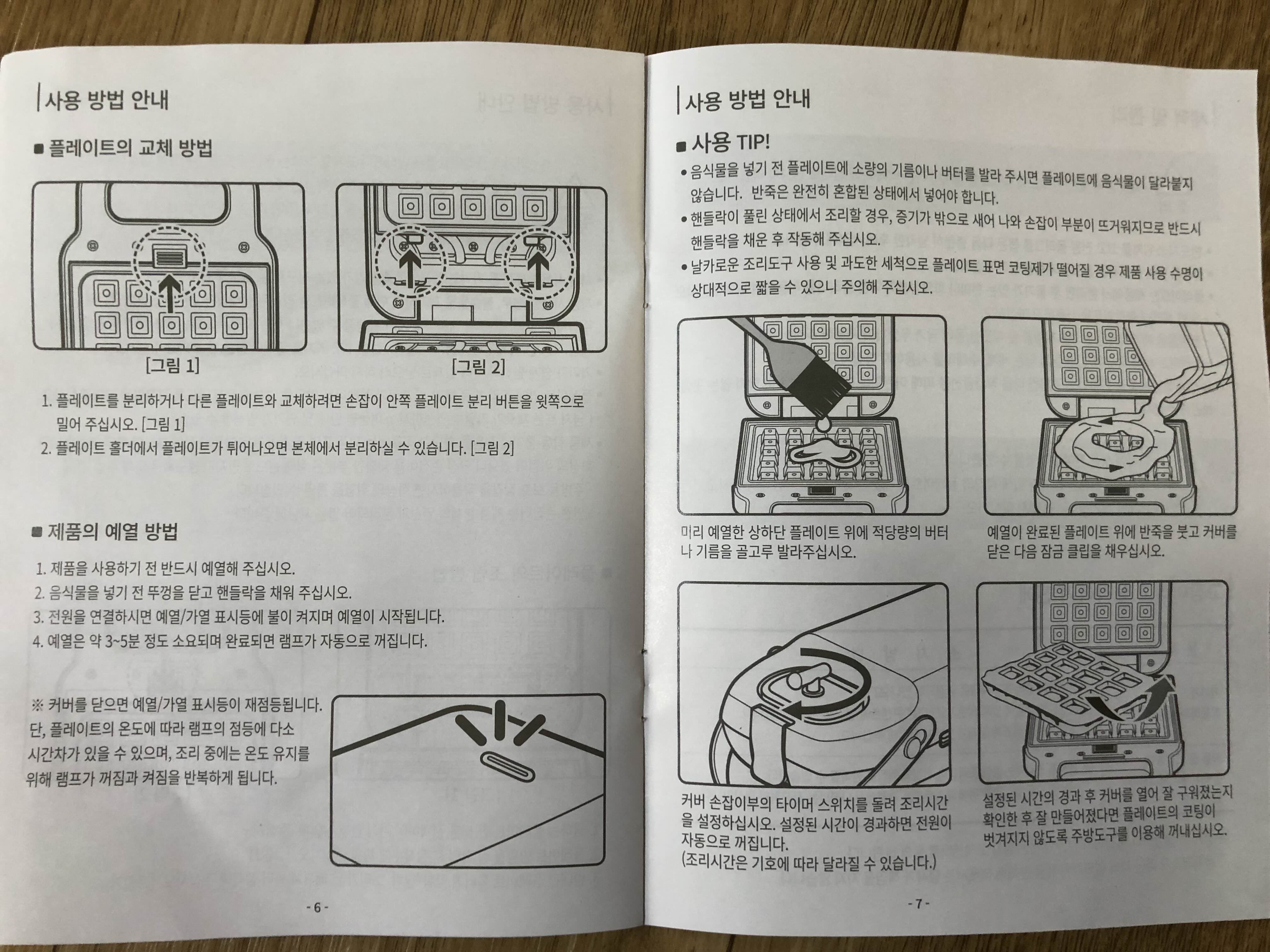 교체할 수 있는 샌드위치 판이 들어있었다