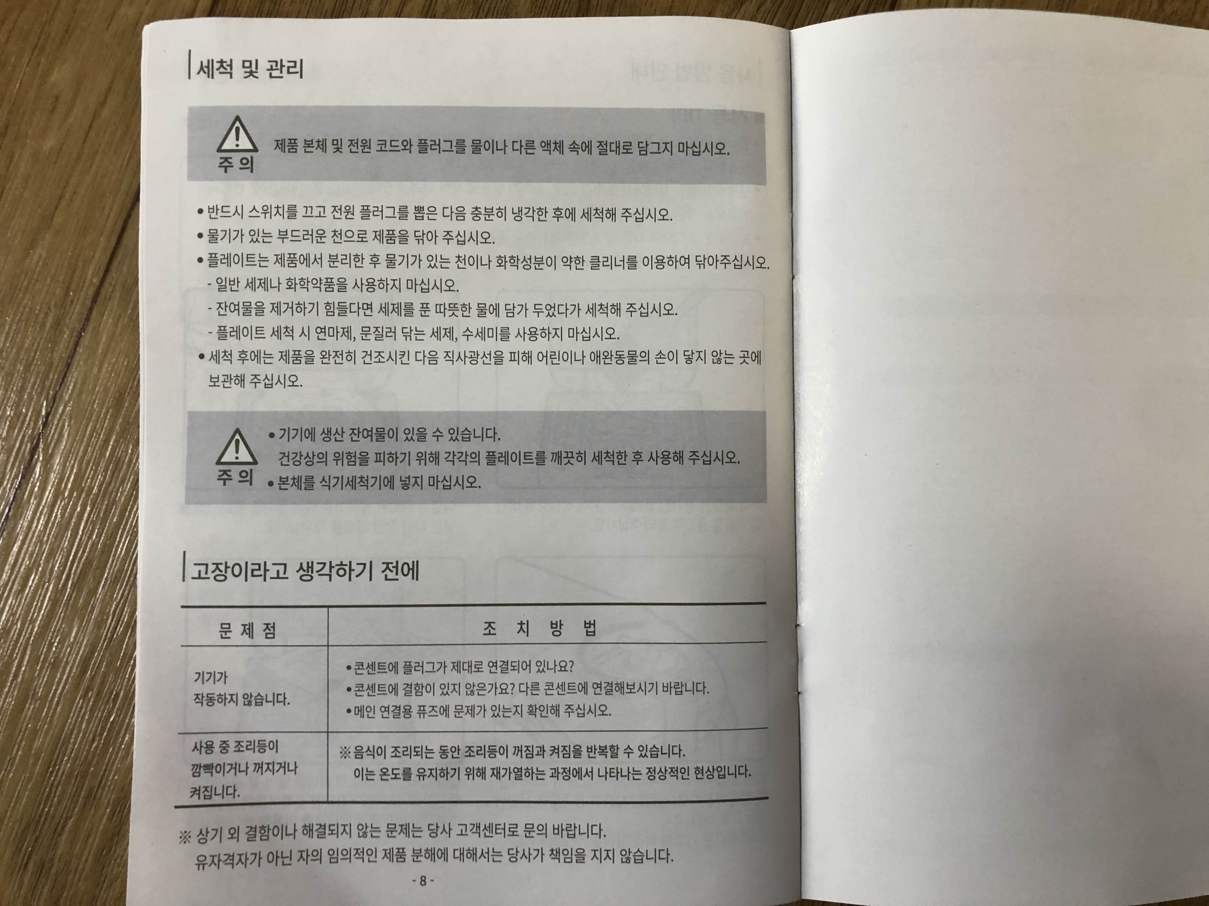 본체기기는 세척하면 안 되고