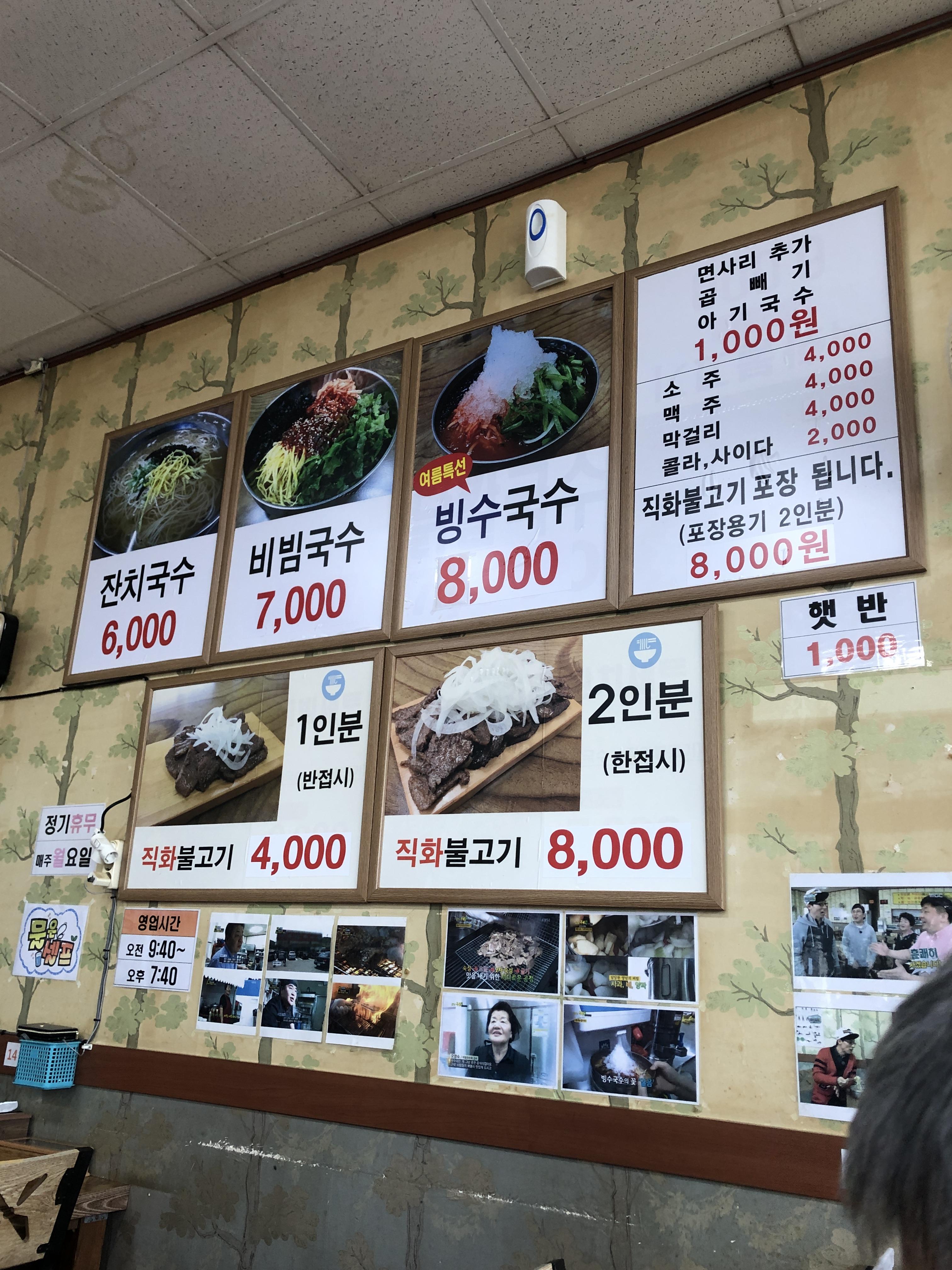 메뉴판에 빙수국수가 보이지 않으면