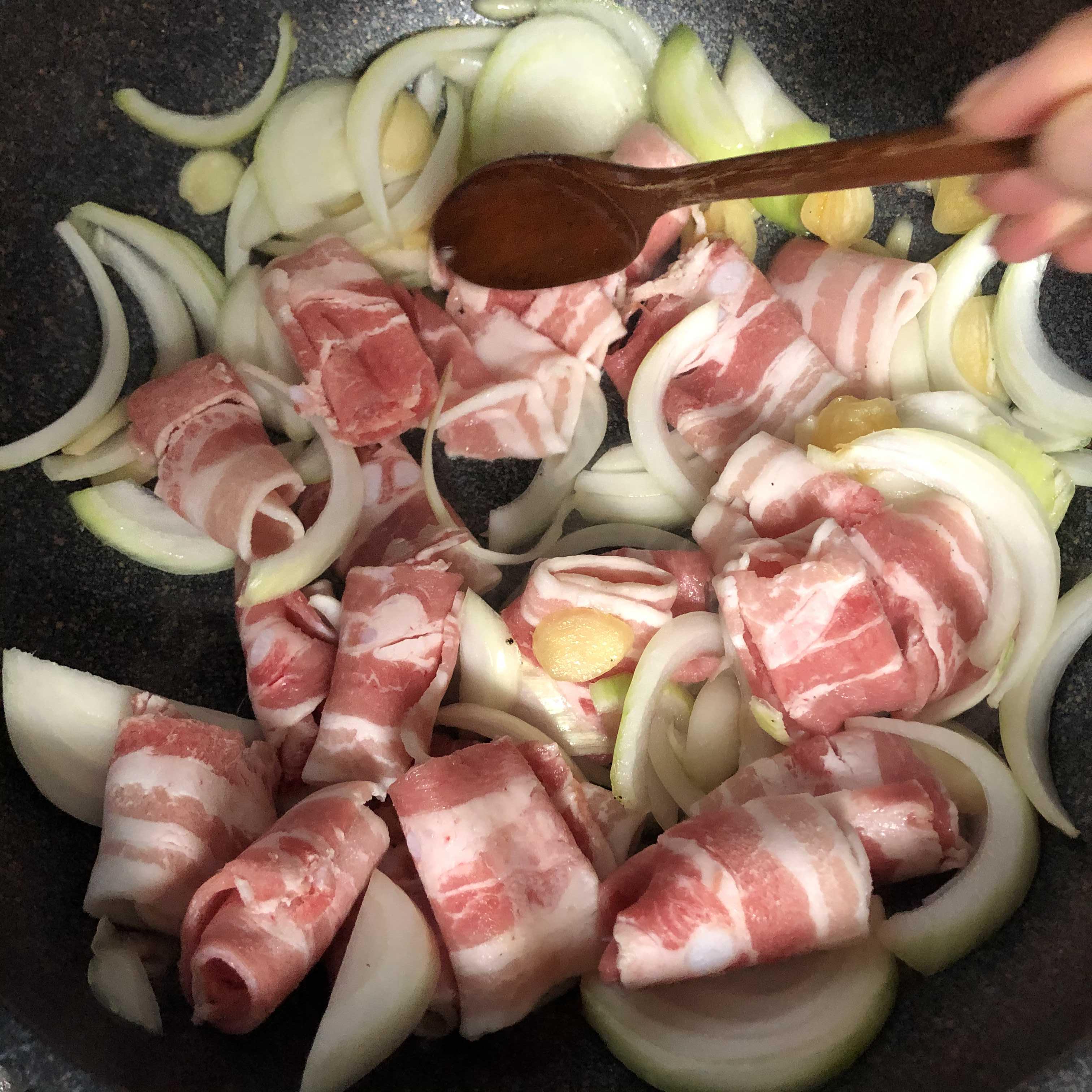 - 양파와 고기를 차례로 넣는다.