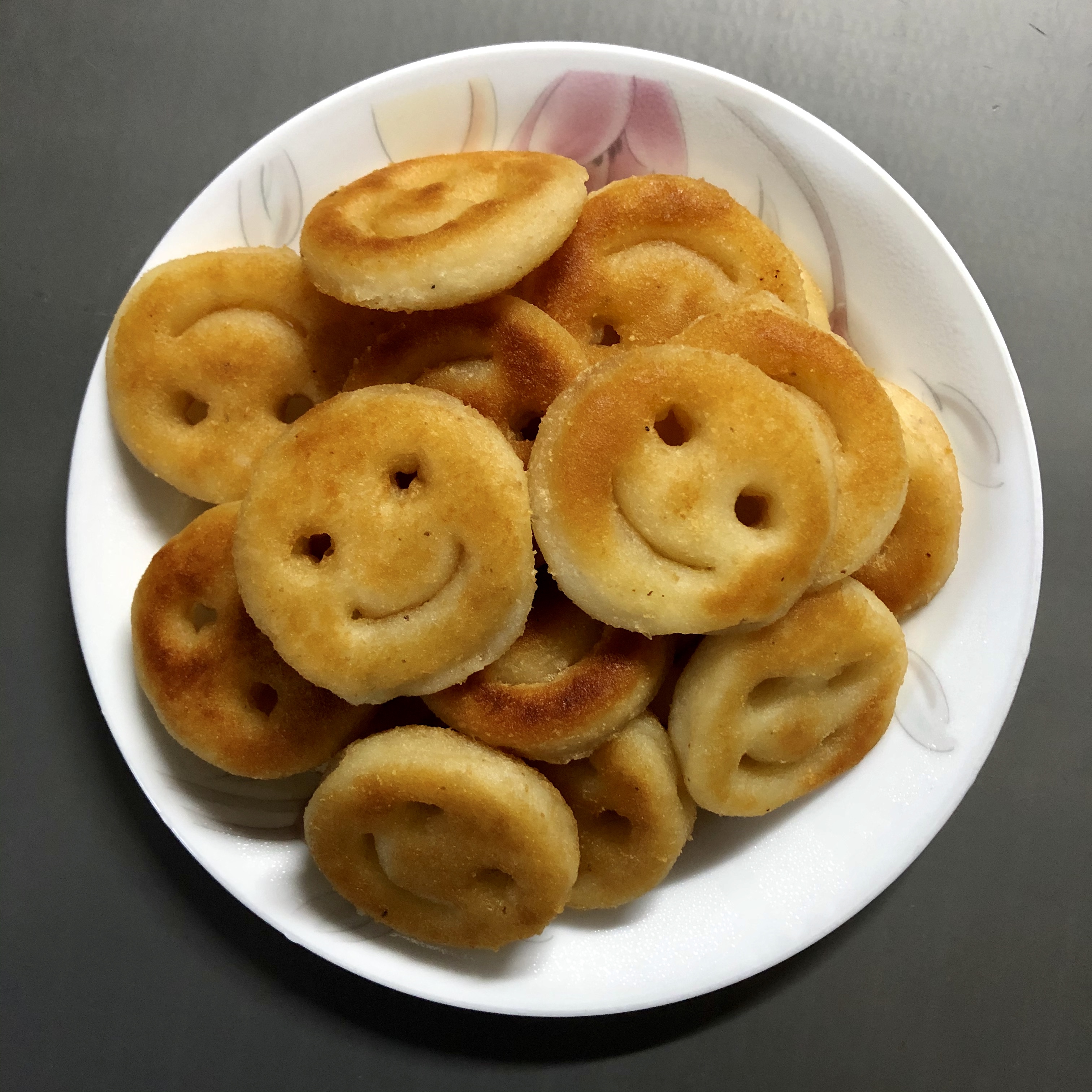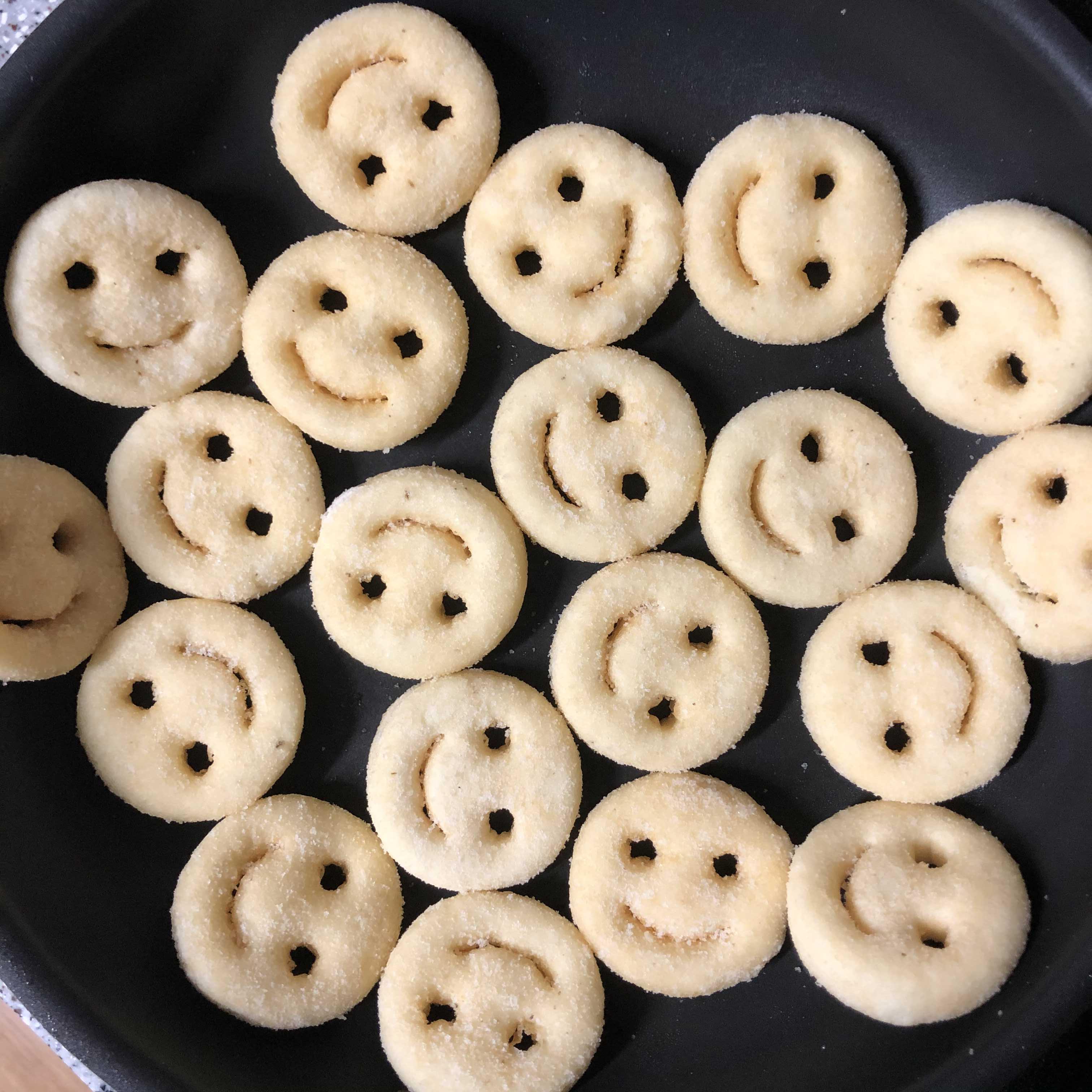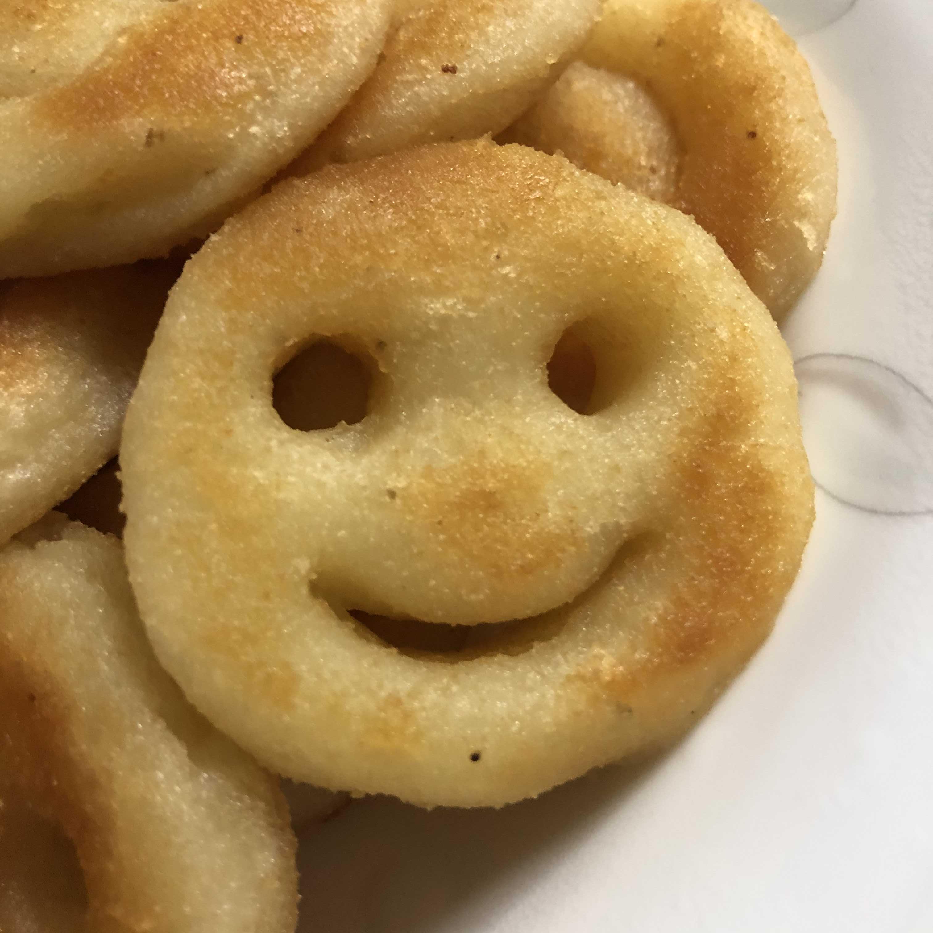 - 스마일 감자를 튀긴다. (기름을 많이 안 하고 살짝 둘러서 구워도 됨)